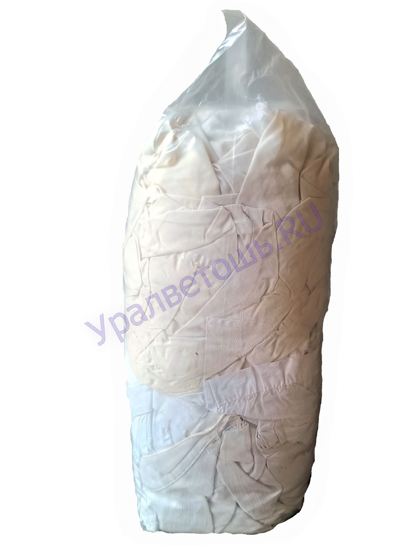 ХБ-100%. Белый по цвету хлопчатобумажный лоскут (ситец, бязь). Крупный лоскут (рубашки, сорочки, тонкие халаты). Брикет- 10 кг. Упаковка- полиэтиленовая пленка.