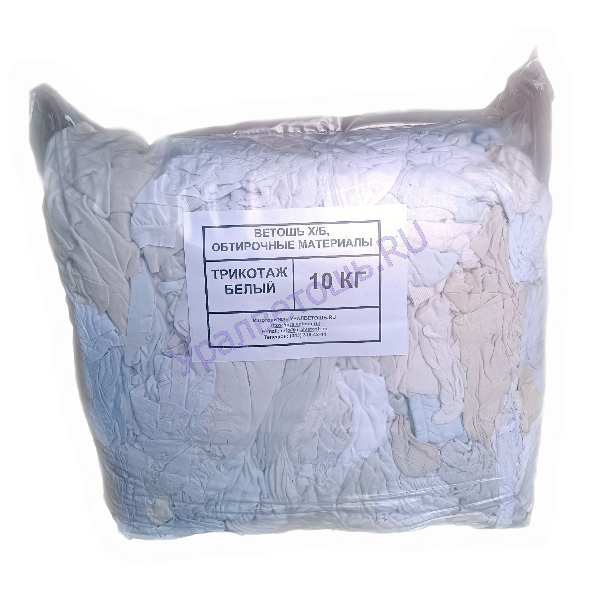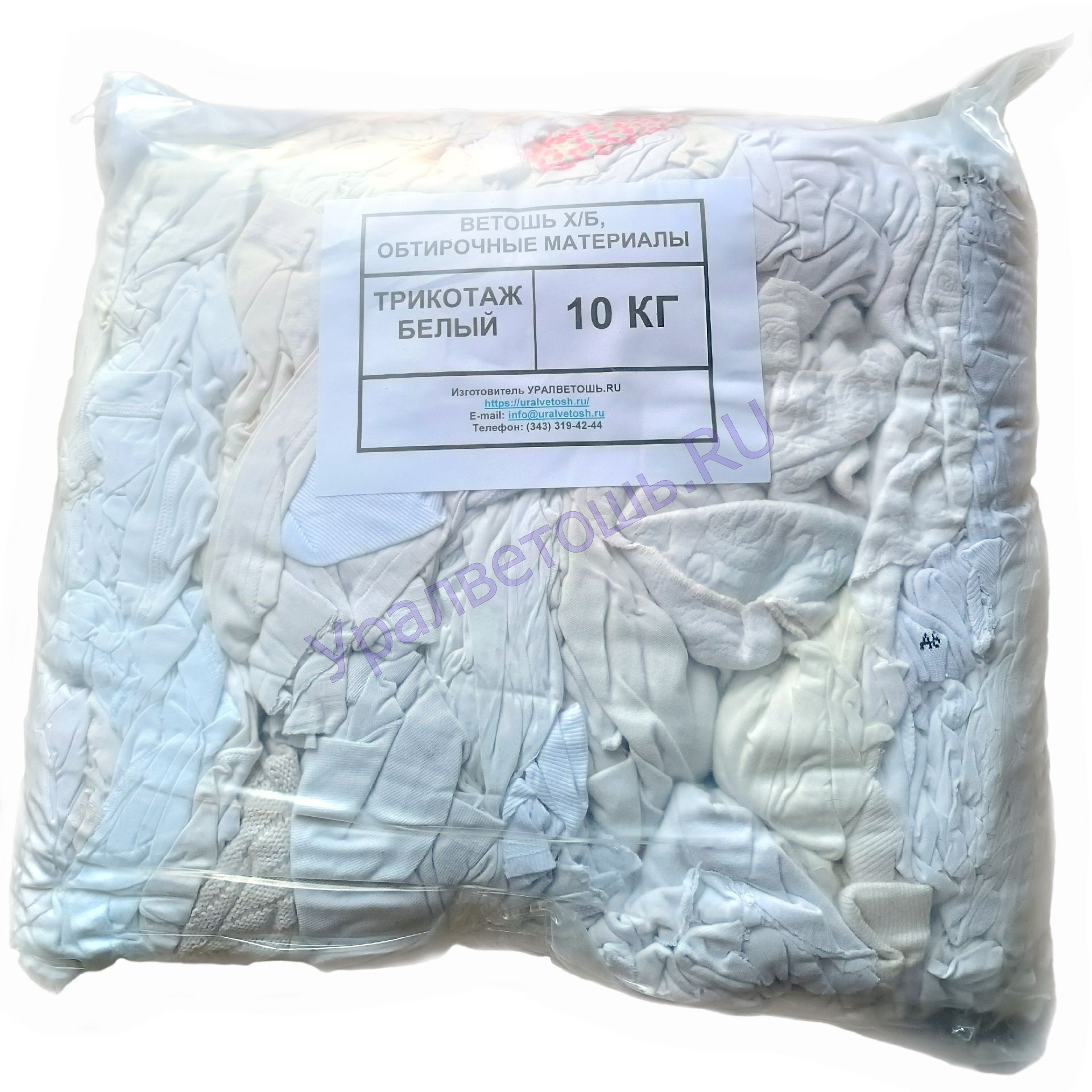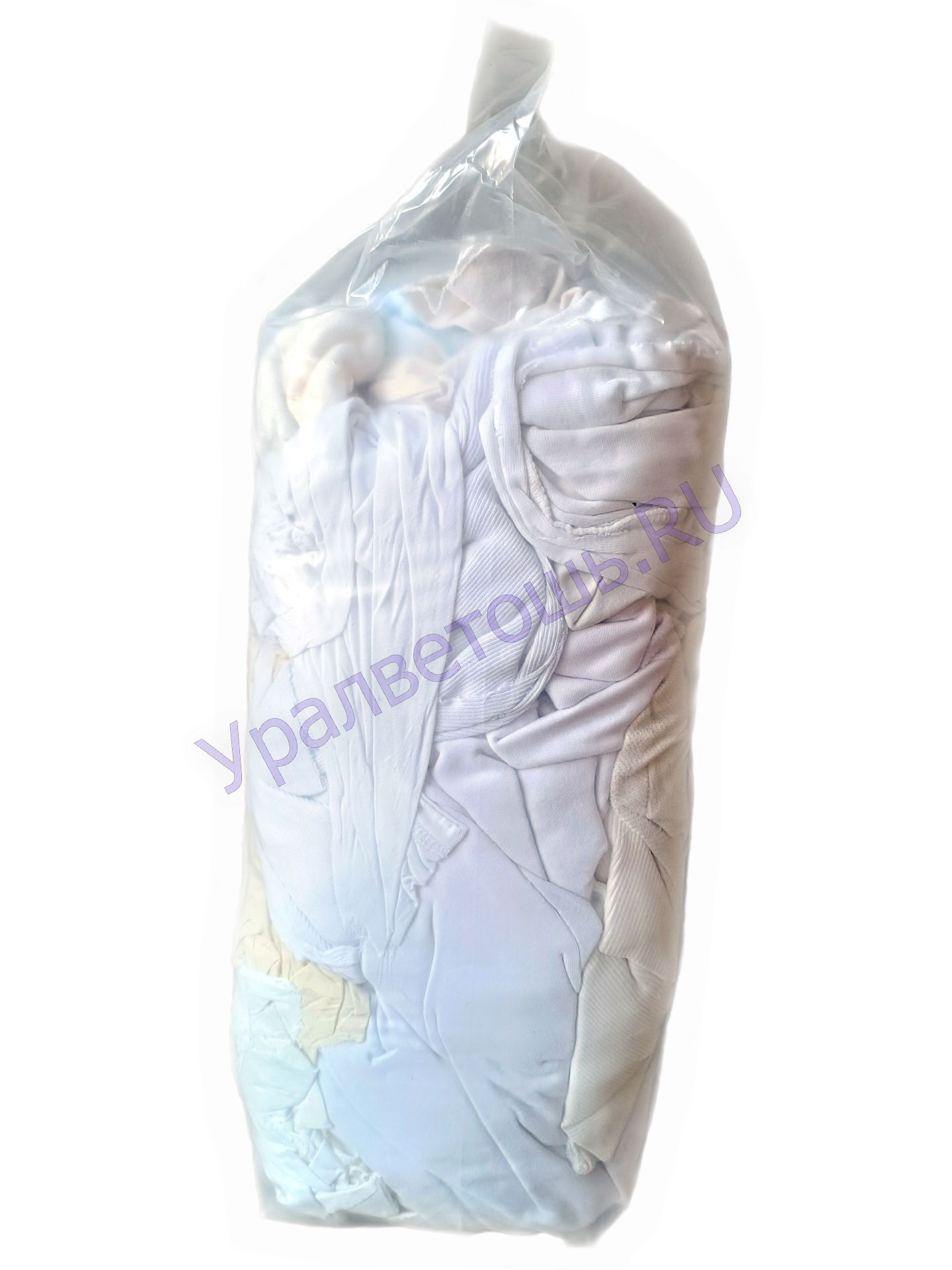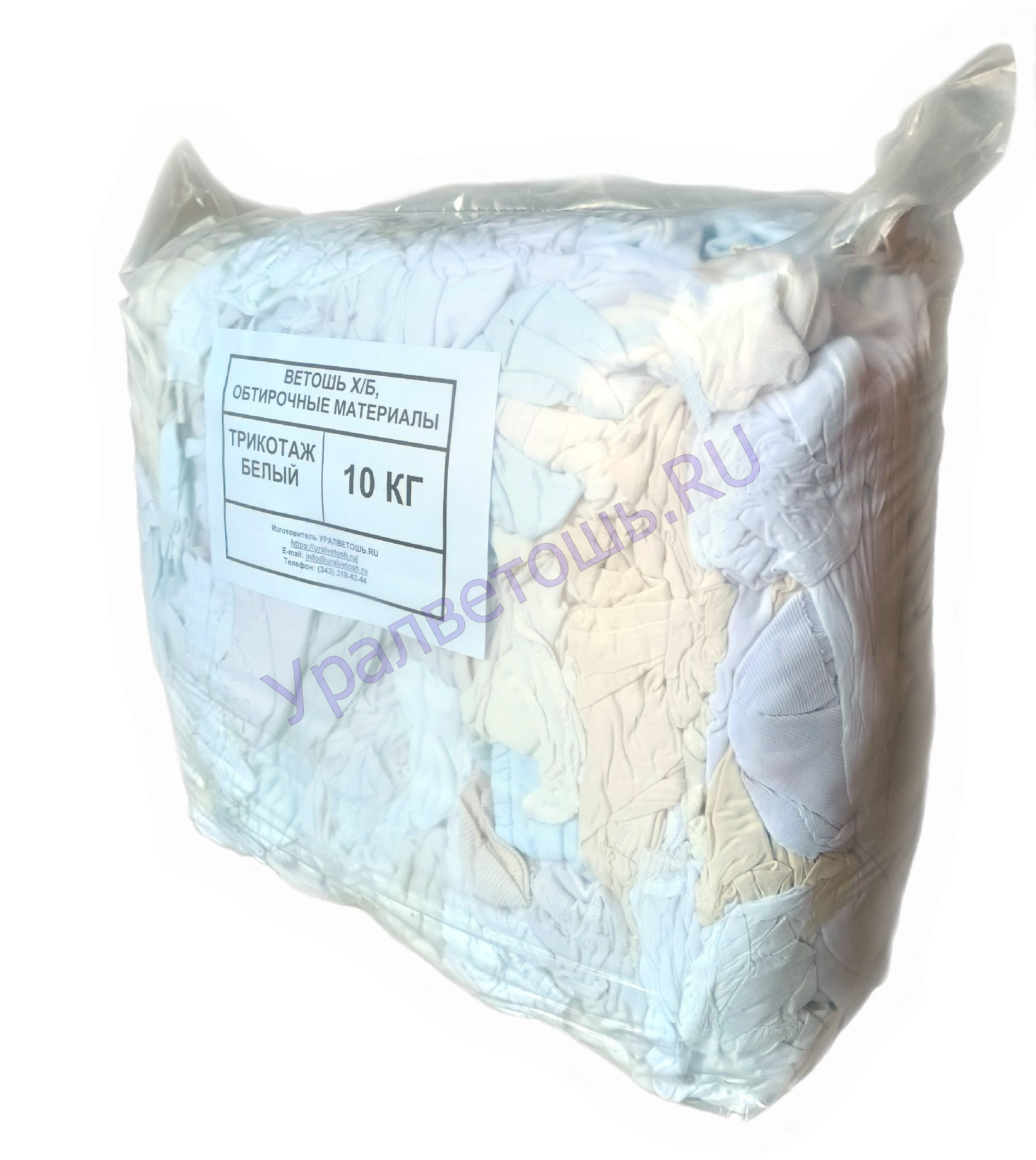 ХБ-100%. Белый по цвету трикотажный лоскут. Крупный лоскут (майки, футболки). Брикет- 10 кг. Упаковка- полиэтиленовая пленка.