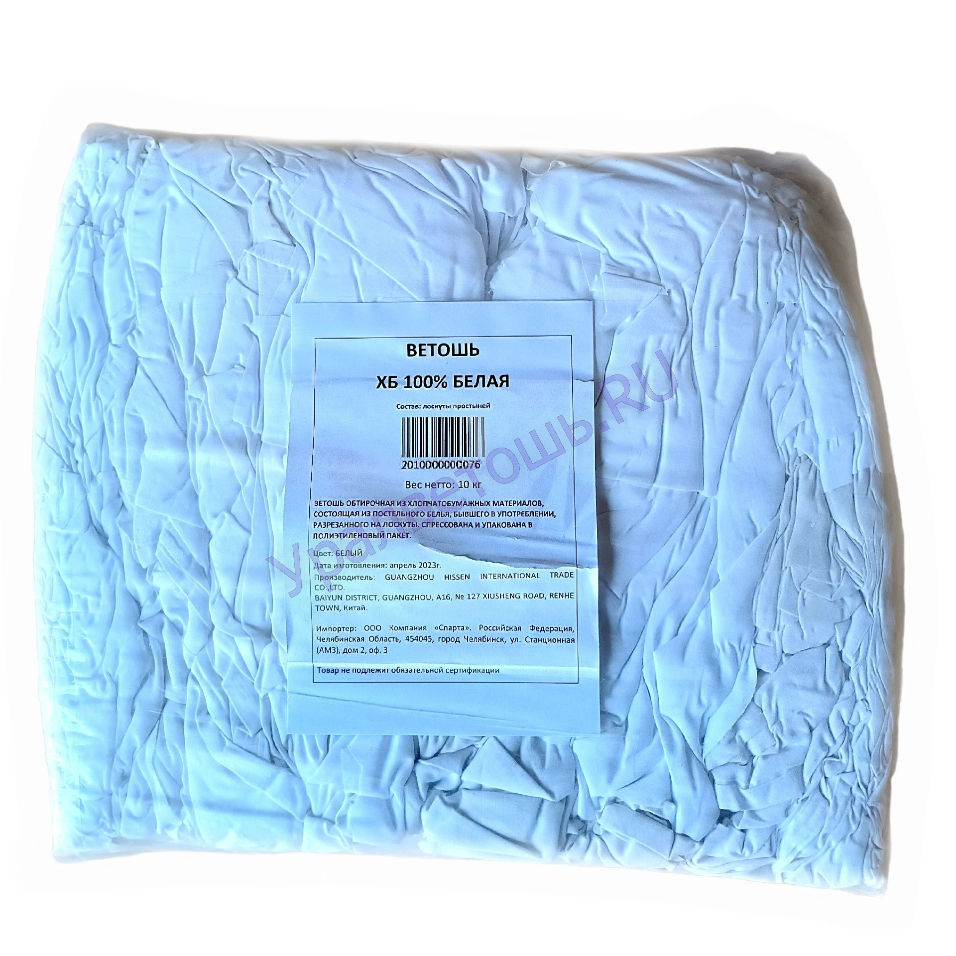 ХБ-100%. Белый по цвету тонкий простынный материал (ситец, бязь), Крупный лоскут (простыни, наволочки). Брикет- 10 кг. Упаковка- полиэтиленовая пленка.