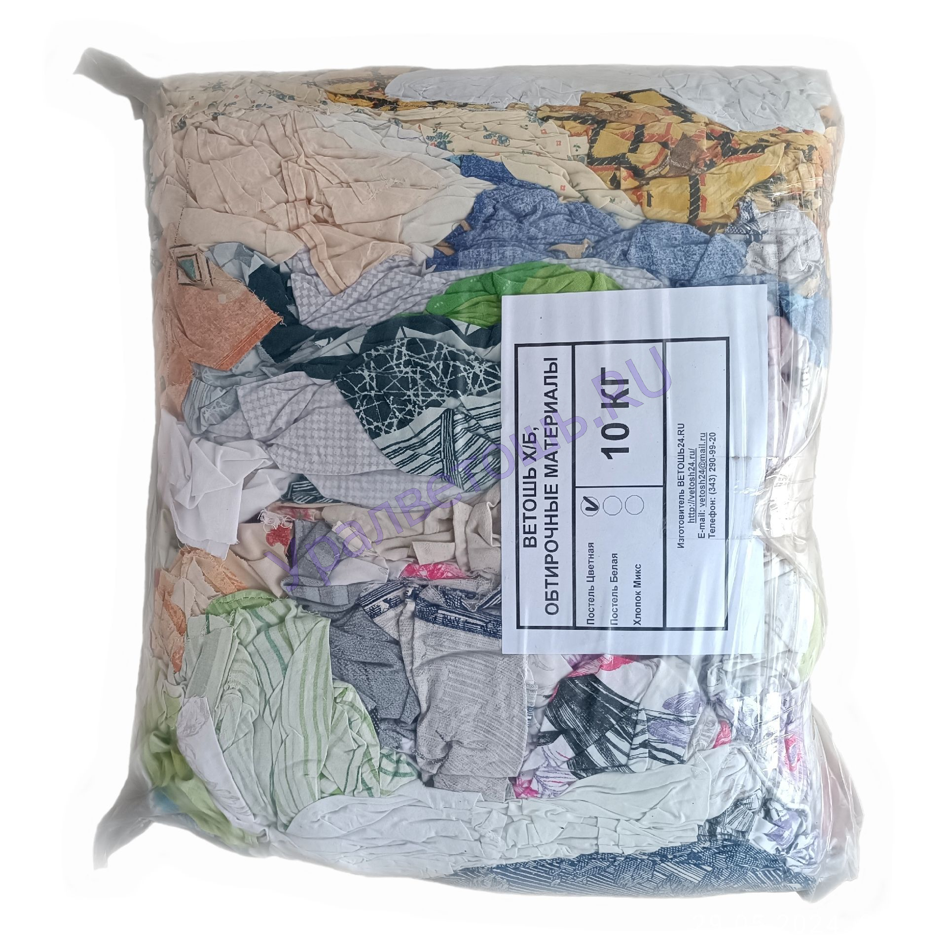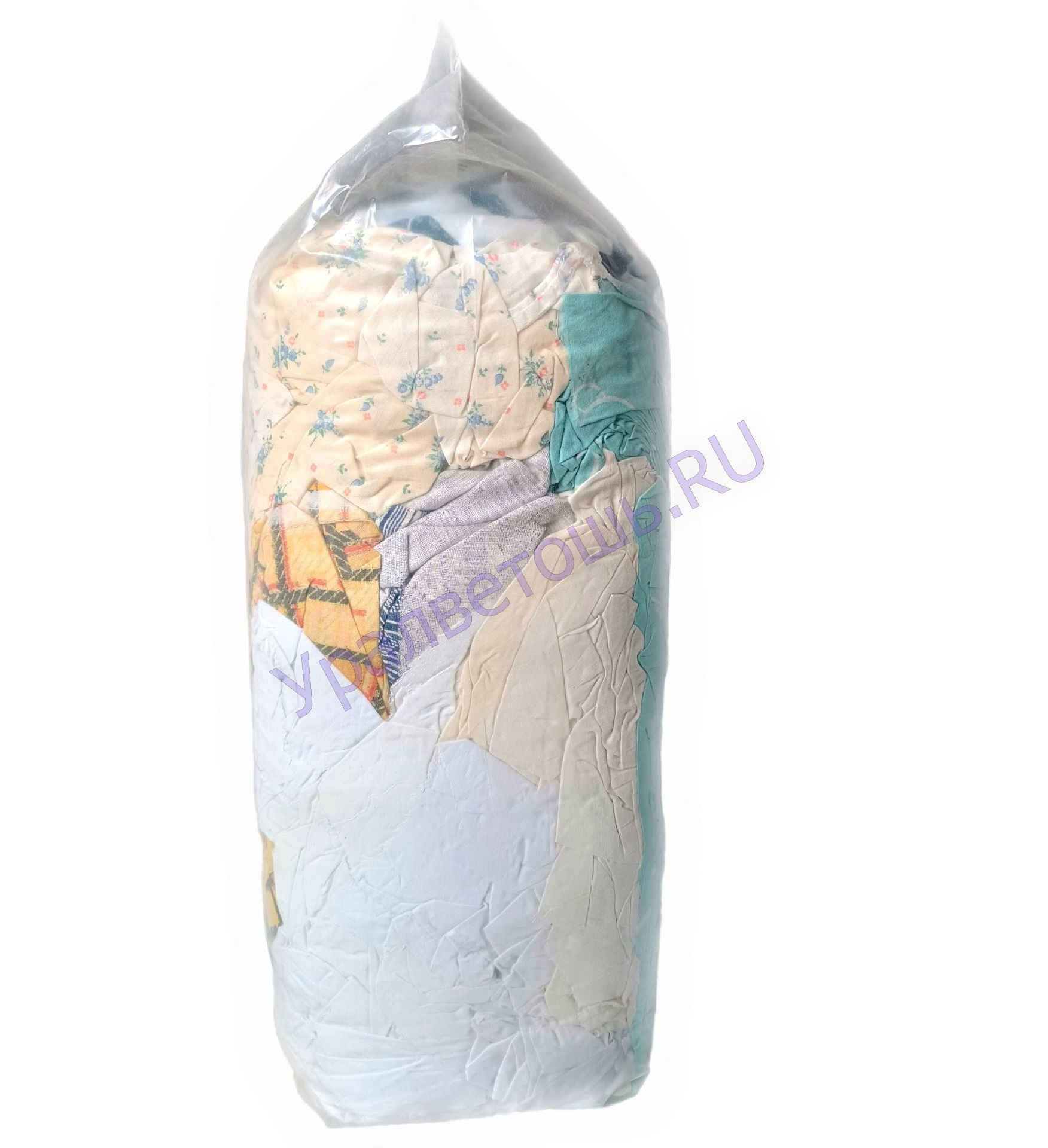 ХБ-100%. Смешанный по цвету тонкий простынный материал (ситец, бязь), Крупный лоскут (простыни, наволочки). Брикет- 10 кг. Упаковка- полиэтиленовая пленка.